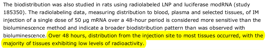 So they knew about the risk of off-target distribution, and despite that they totally ignored it, inoculating billions people with these pharmaceutical products.